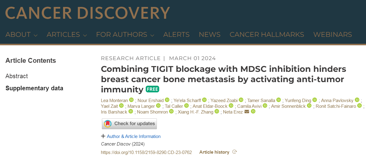 图片来源:https://aacrjournals.org/cancerdiscovery/article/doi/10.1158/2159-8290.CD-23-0762/734997/Combining-TIGIT-blockage-with-MDSC-inhibition